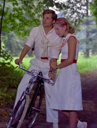 In a series of flashbacks, DeSica’s film captures the desire of the characters to freeze time. Rather than orienting the viewer visually, the scenes within rooms of the aristocratic villa behind the high walls of an edenic garden, mimic the sense of claustrophobia and an enclosed state of mind. The clinging to the way of life they know (strolling and bicycling through manicured gardens, chatting with friends at the private tennis courts), the false sense of security, the genteel seclusion, the light hearted ways of defending from reality, and finally the fatalistic acceptance of their doomed fate, creates an anticipatory nostalgia. It’s the nostalgia for time itself when you can sense it slipping away and you’re already missing what you haven’t yet lost. The narrator who has been drawn to the mysterious, aristocratic family of the Finzi-Contini since childhood, has always felt like an outsider…a middle class kid, suddenly subjected to the Racial Laws in 1938. As exclusion from the library, the public tennis courts and other restrictions and indignities pile on, he is also falling in love with the dazzling but aloof Micòl. Her character is one who embodies nostalgia, preferring the “dear, the sweet, the sacred past” to the present moment. He makes several clumsy and desperate romantic overtures but is rebuffed each time. She explains that they were childhood friends and she refuses to sully the perfect shared memories of innocence, “You and I are not normal people. For the two of us, what counts more than the possession of things, is the remembrance of things, the memory of things.”
